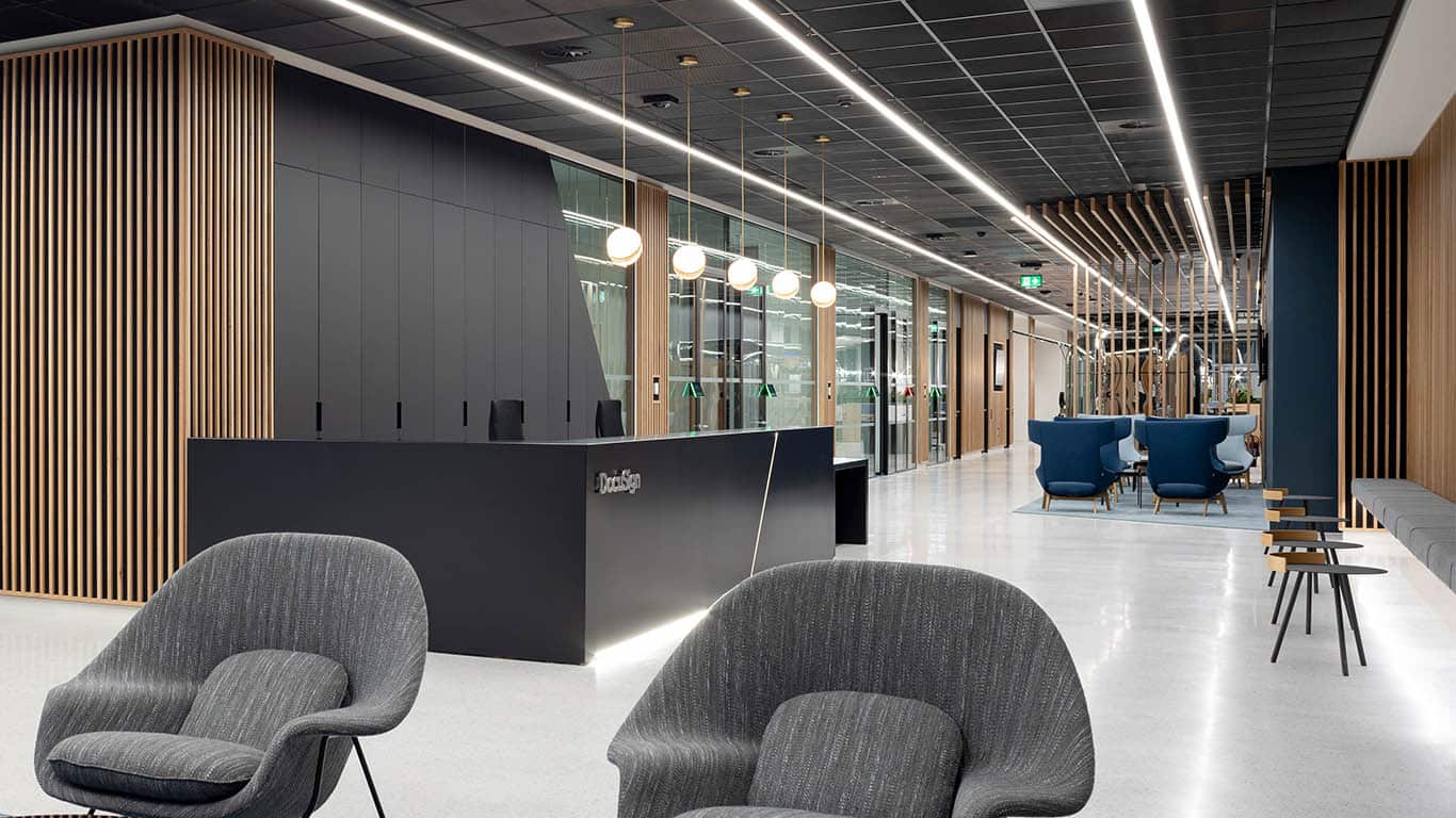 Walls to Workstations collaborated with Henry J Lyons to supply and install glazed partitions and doors for DocuSign Dublin.