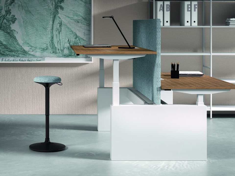 Our Adjustable Height Desks Solutions answer today’s well-being challenges in the work environment. They motivate a dynamic, natural body movement while keeping a professional space.